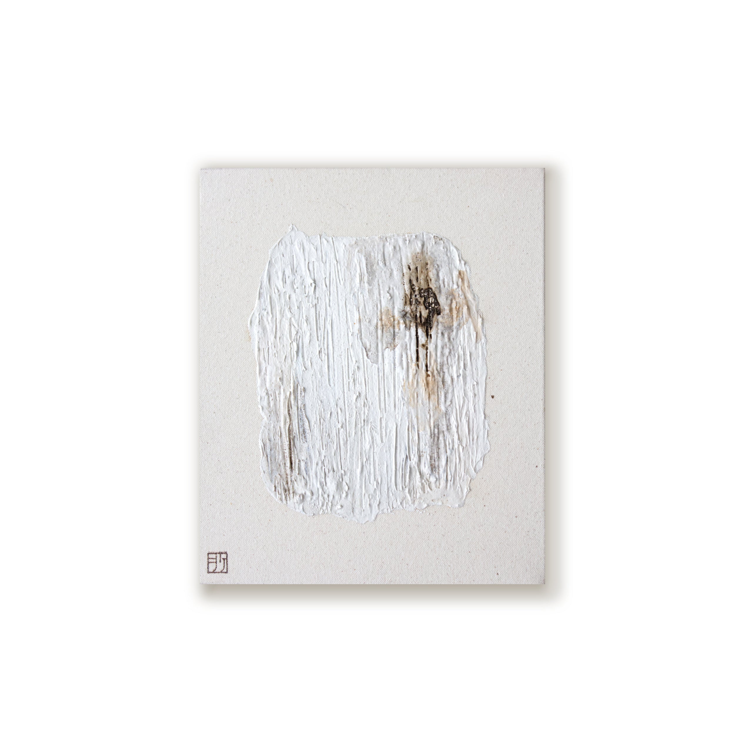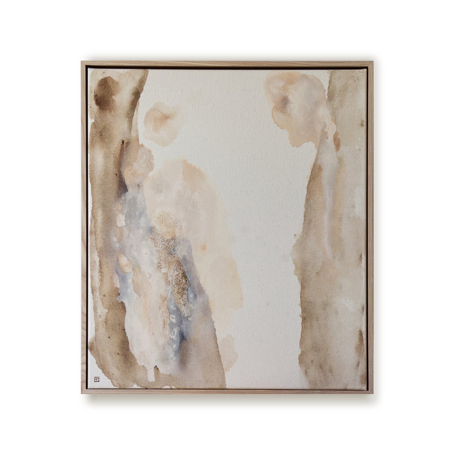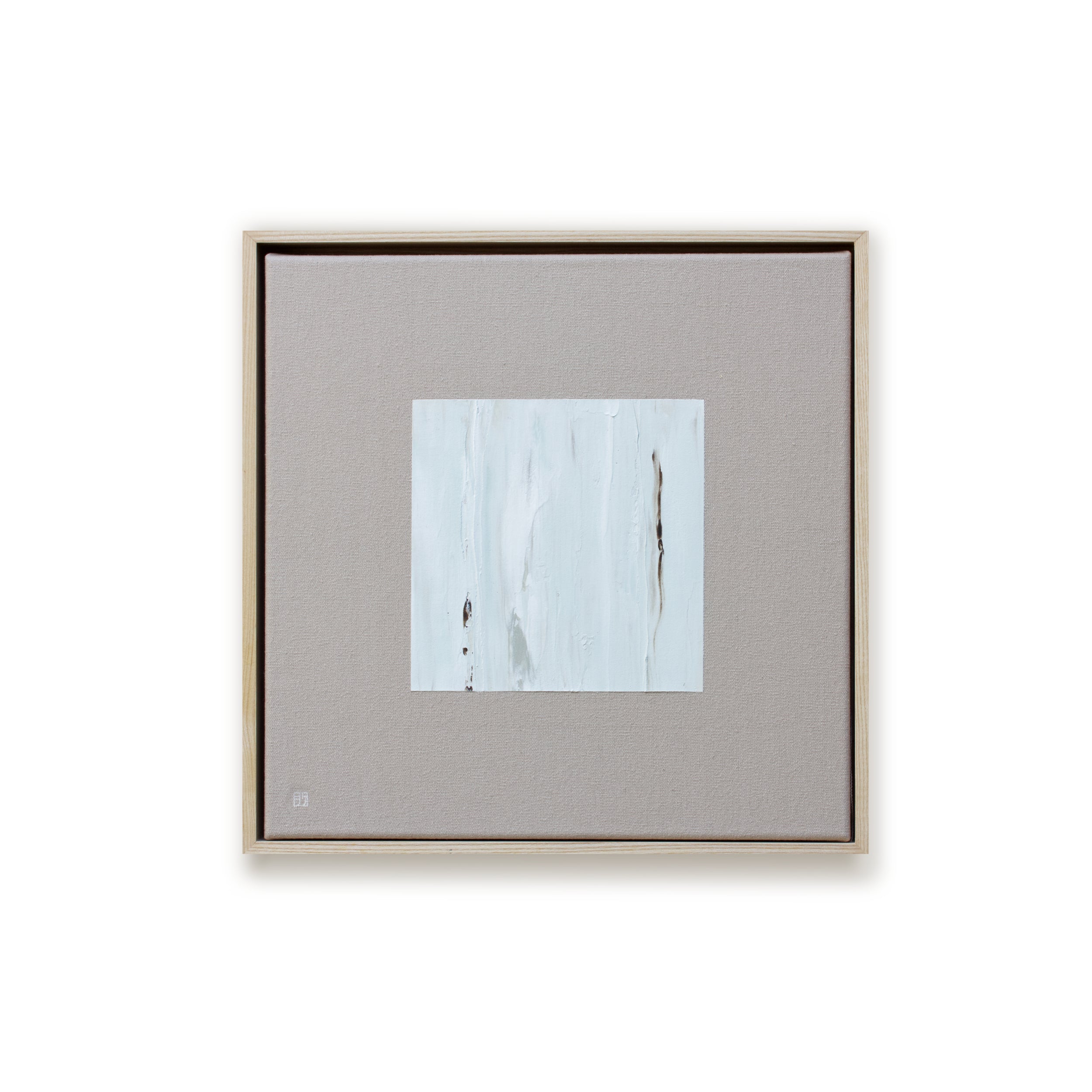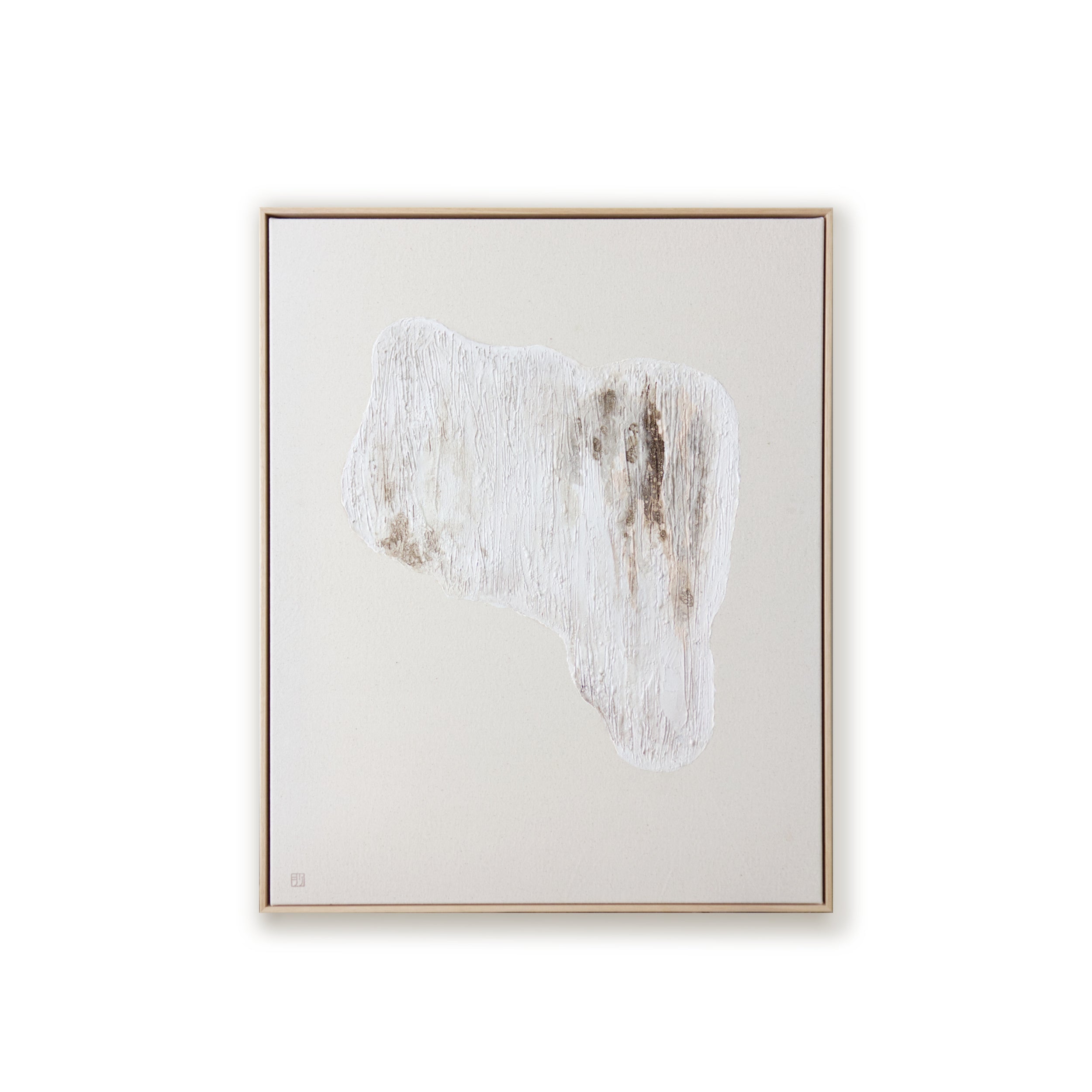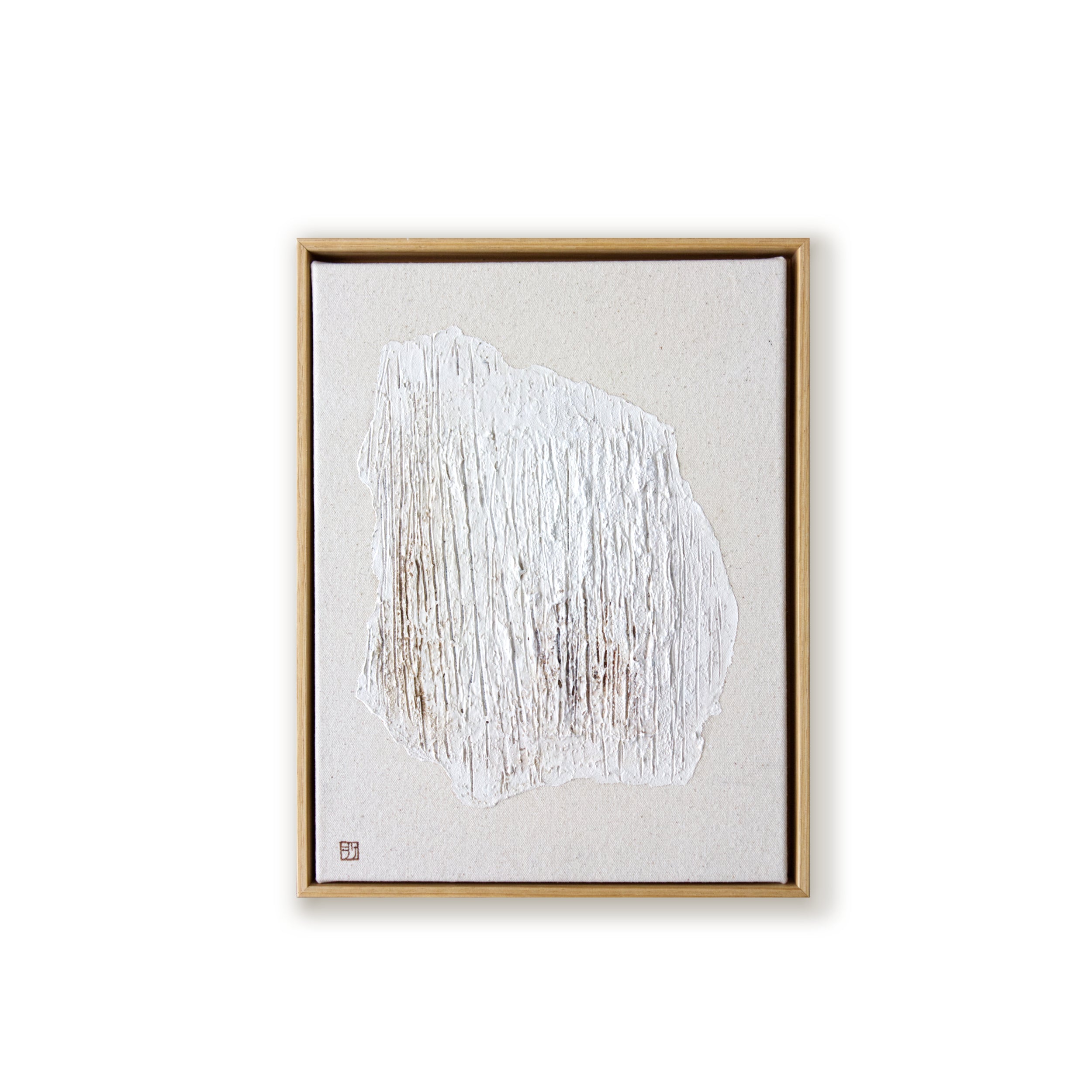 Inspired by a Shigaraki-yaki pot in Ginza, this work translates the gentle tones and flowing unpredictability of ceramics onto canvas. Through a self-developed technique, I created a “lava effect” surface, evoking wabi-sabi’s quiet beauty in imperfection and natural texture.