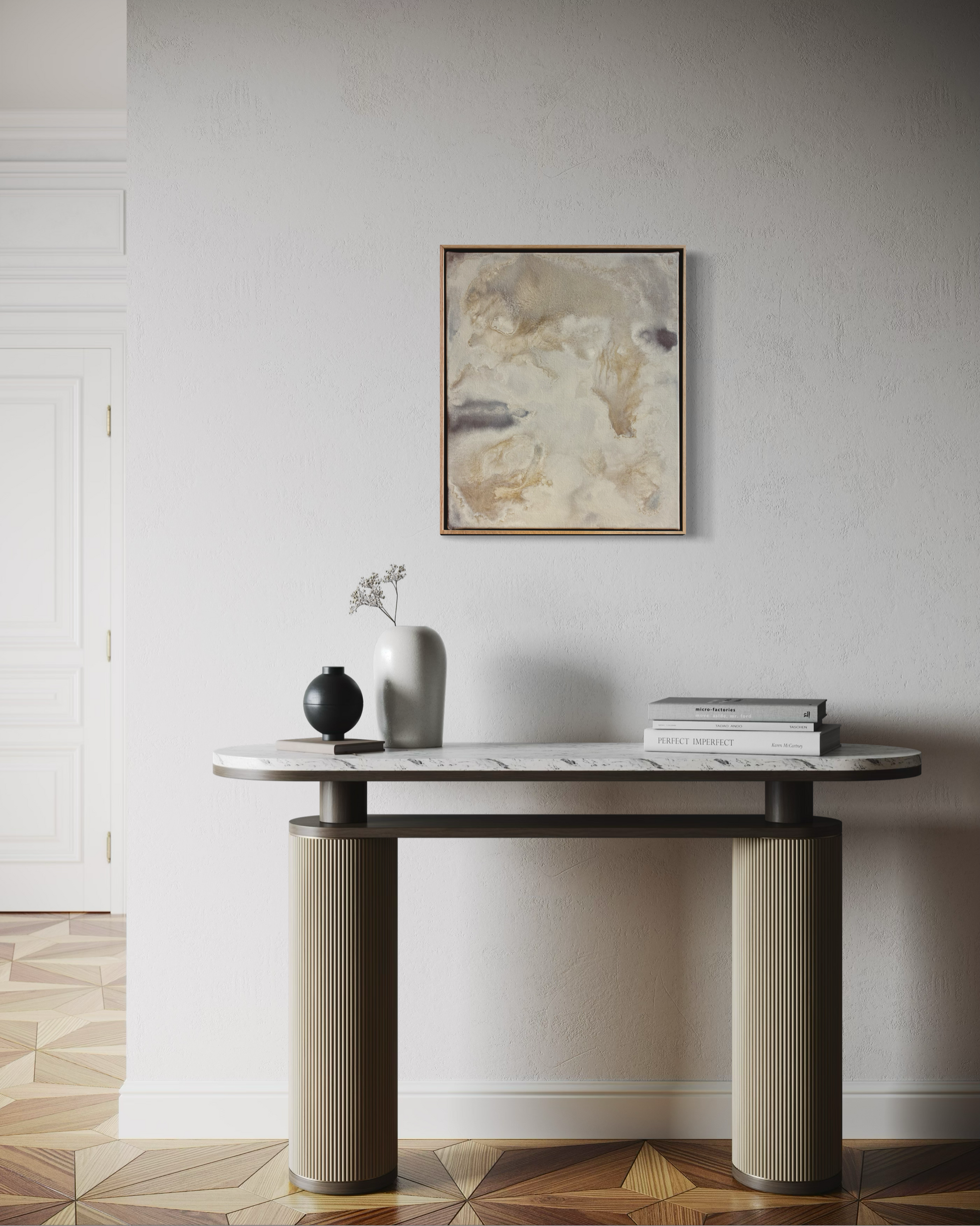 Mix media, acrylic and hand-grounded sumi ink
